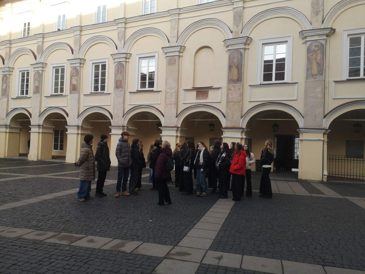 Trečiadienį, gruodžio 10 dieną, 1a klasė leidosi į kalėdinį Vilnių. Atvykę į sostinę, kartu su mokytoja Birute Bendoraitiene leidomės į jaukią ekskursiją po žymiausias miesto vietas. Aplankėme Šv. Onos ir Šv. Jonų bažnyčias, pasivaikščiojome po žavingas Stiklių ir Literatų gatveles. Užsukome ir į Vilniaus universiteto Filologijos fakulteto vidinį kiemelį, o pakeliui pasigrožėjome Rotuše bei Katedra. Nepamiršome stabtelėti ir Prezidentūros kiemelyje. Laisvu metu kiekvienas turėjome progą pasinerti į spindinčią kalėdinę sostinės nuotaiką: aplankėme jaukų Vilniaus kalėdinį miestelį ir nusifotografavome prie įspūdingos miesto eglės. Kelionę vainikavo „Keistuolių teatro“ spektaklis „Kai aš buvau Prometėjas“. Jis paliko gilų įspūdį – paskatino susimąstyti, padiskutuoti apie moralines vertybes ir dar ilgai neišblėso mintyse. Kupini geros nuotaikos ir naujų įspūdžių grįžome į Šakius.