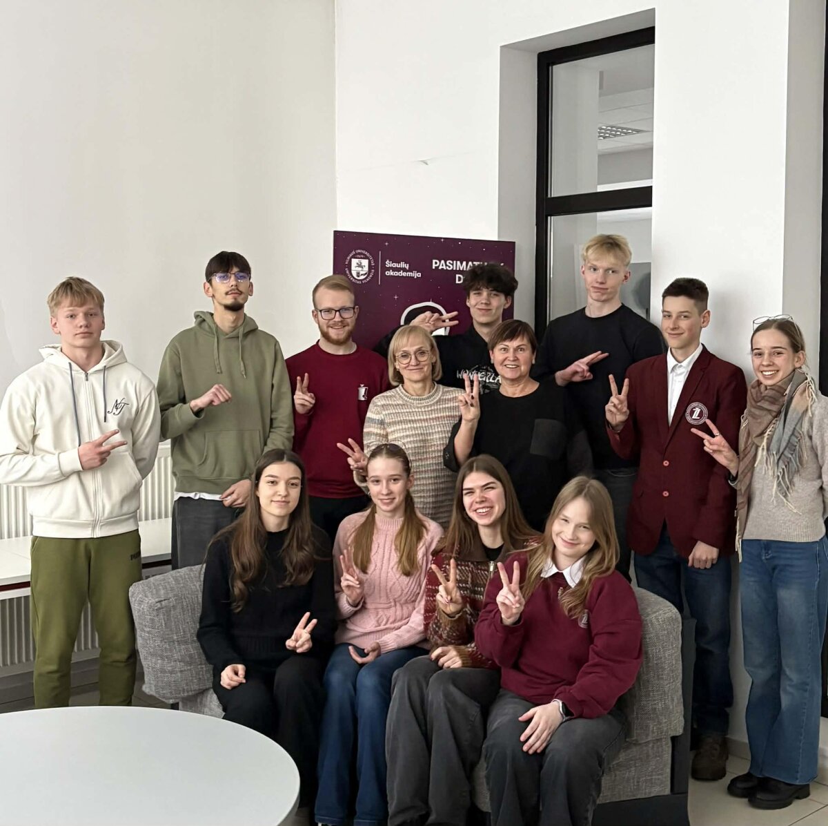 Vasario 28 d. vienuolika gimnazistų: Vytautė Ažukaitė (1a kl.), Urtė Ignatavičiūtė (1b kl.), Ainius Česnulevičius (1b kl.), Aurėja Mockutė (2a kl.), Ričiardas Merkeliūnas (2a kl.), Kajus Bilinskas (2b), Karolis Sadauskas (3a kl.), Mantas Šidlauskas (3a), Lėja Mockutė (4a kl.), Austėja Verpečinskaitė (4a kl.) ir Antanas Tarnauskas (4a kl.) dalyvavo 54-ose Jaunųjų matematikų varžybose, kurios vyko VU Šiaulių Akademijoje.