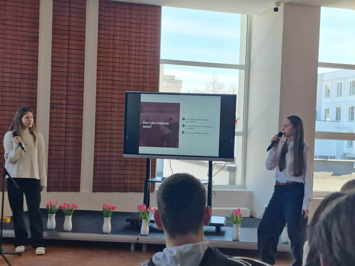 Konferencijos metu dalyvavome diskusijose, kuriose kartu su kitais mokiniais ieškojome sprendimų įvairioms mokyklose kylančioms problemoms, o po aptarimų išvykome namo. Tai buvo labai naudinga ir smagi patirtis, kurią, tikime, galėsime pritaikyti savo mokyklos gyvenime.