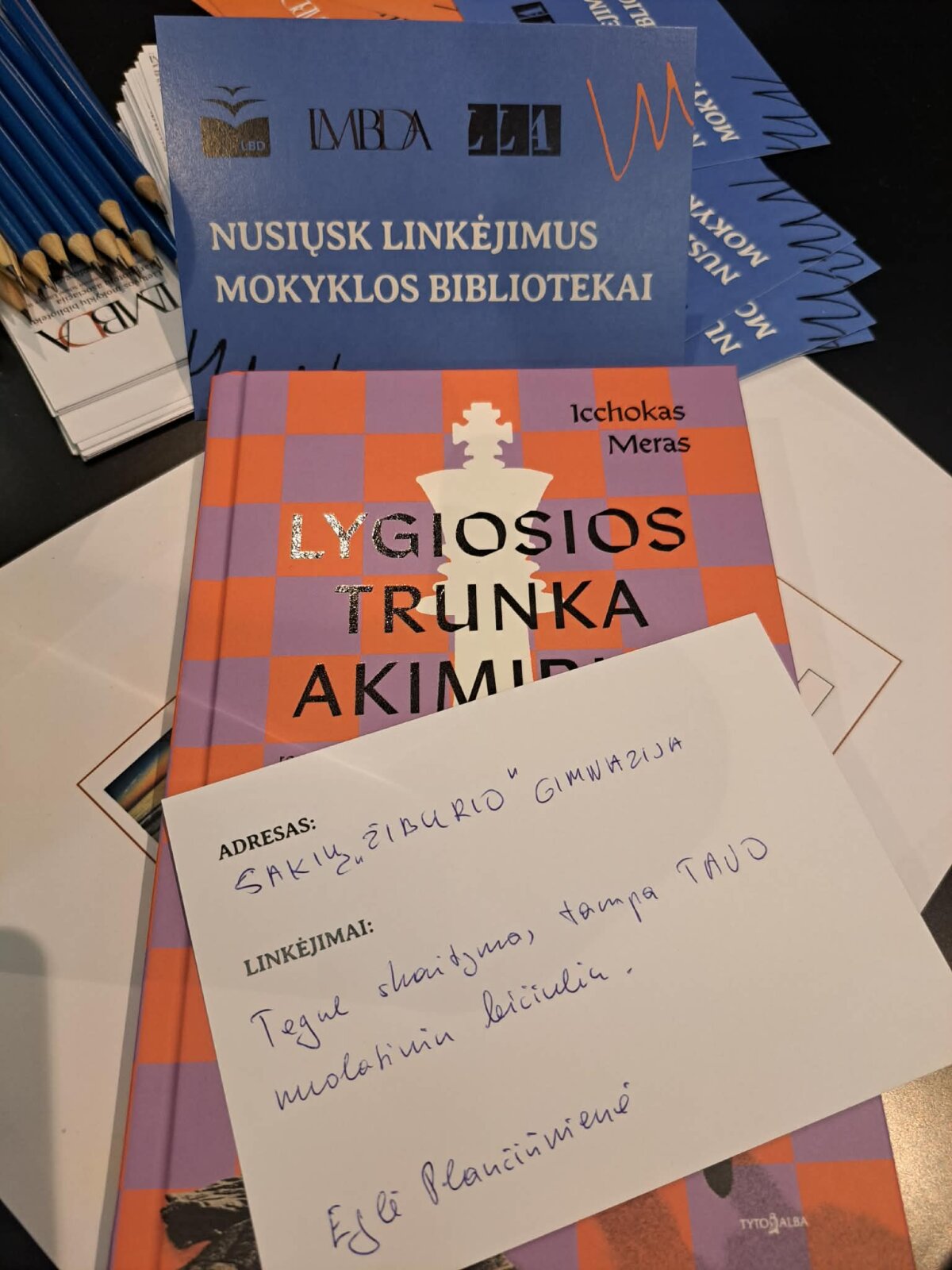 Neseniai praėjusioje Knygų mugėje mūsų gimnazijos bibliotekininkė buvo ne tik viena iš akcijos "Nusiųsk linkėjimus mokyklos bibliotekai " organizatorių, bet surinko linkėjimus ir mūsų gimnazijos bibliotekai.
