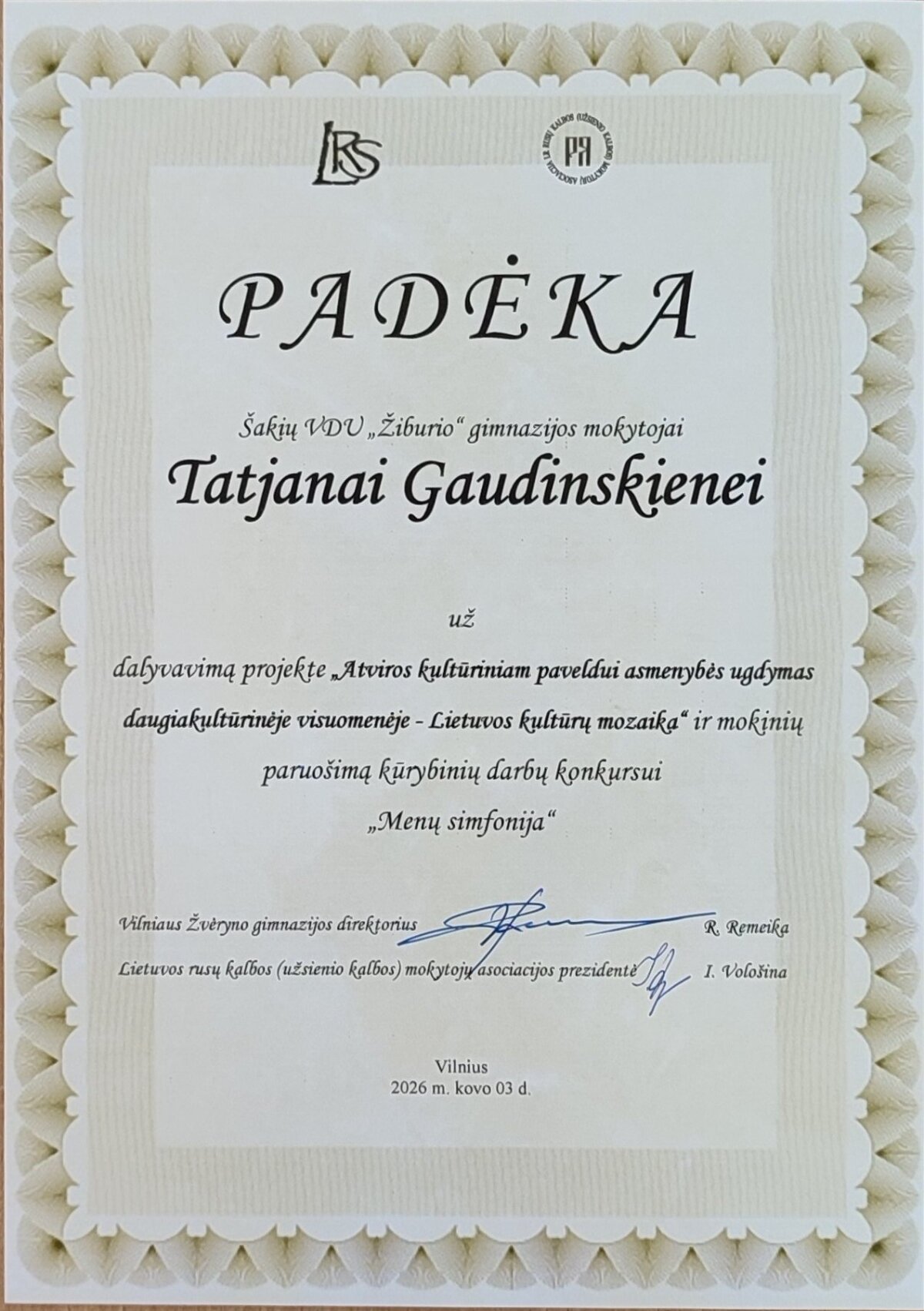 Dalyvauti konkurse Vytautę paskatino rusų kalbos mokytoja Tatjana Gaudinskienė.