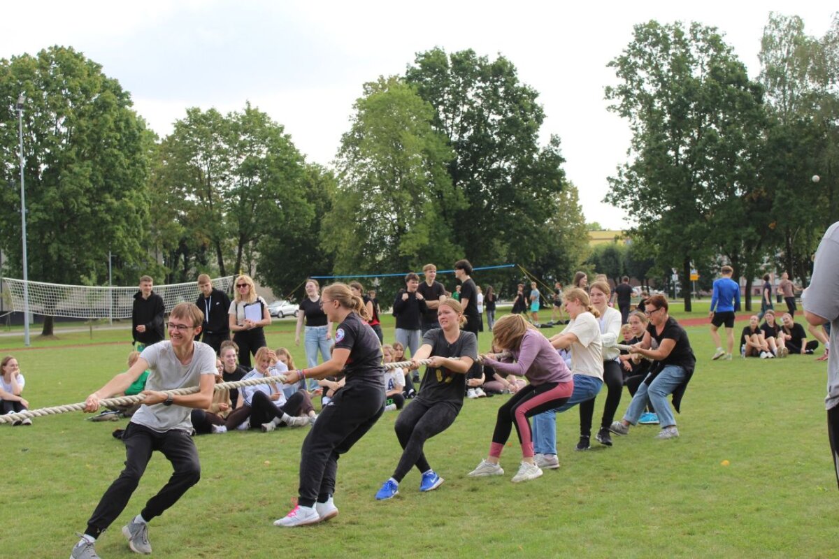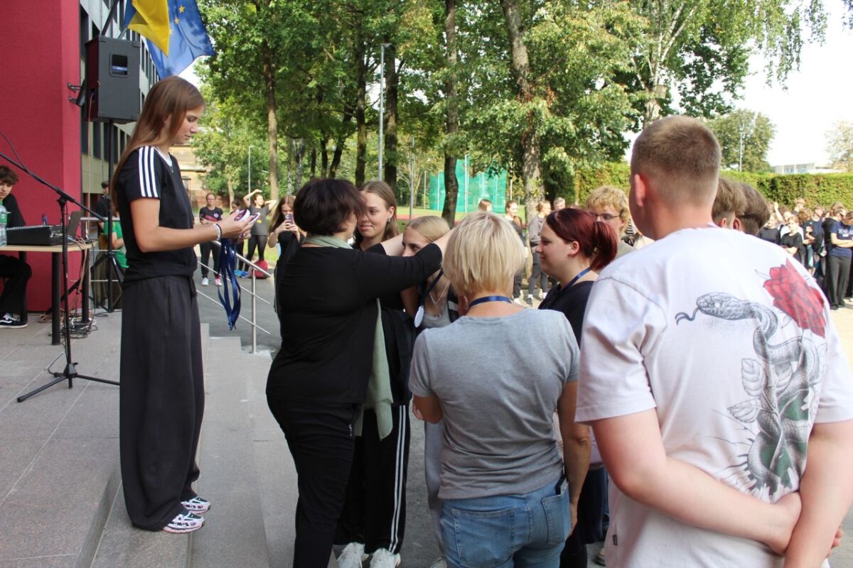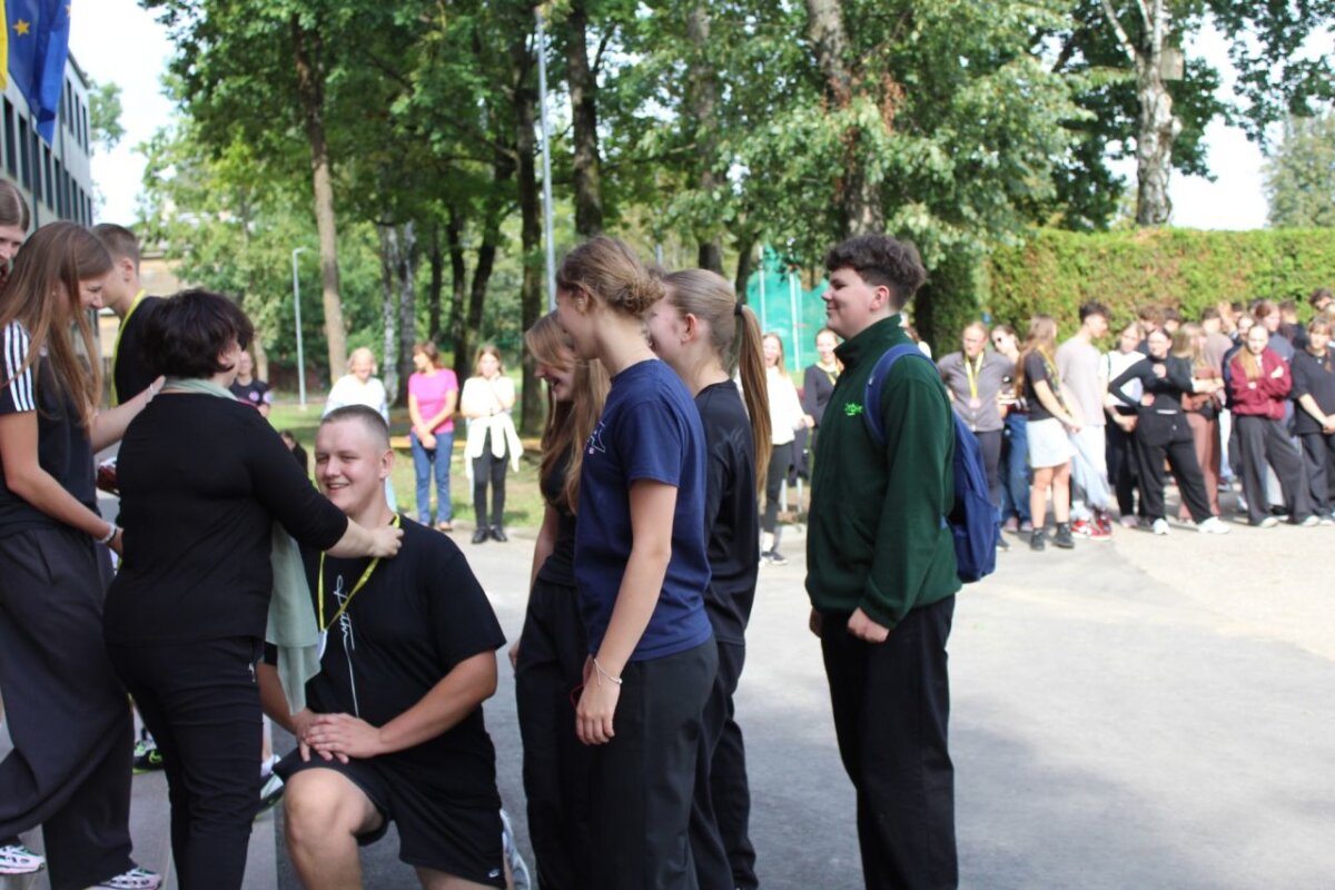 Tinklinis, krepšinis, smiginis, virvės traukimas, šokdynės ir telefono metimo rungtys - sporto šventė penktadienį gimnazistus ir jų mokytojus sukvietė į gimnazijos stadioną ir aikštynus prie sporto centro. Geras oras, puiki nuotaika, daug sportinio azarto ir noro ne tik dalyvauti, bet ir laimėti!