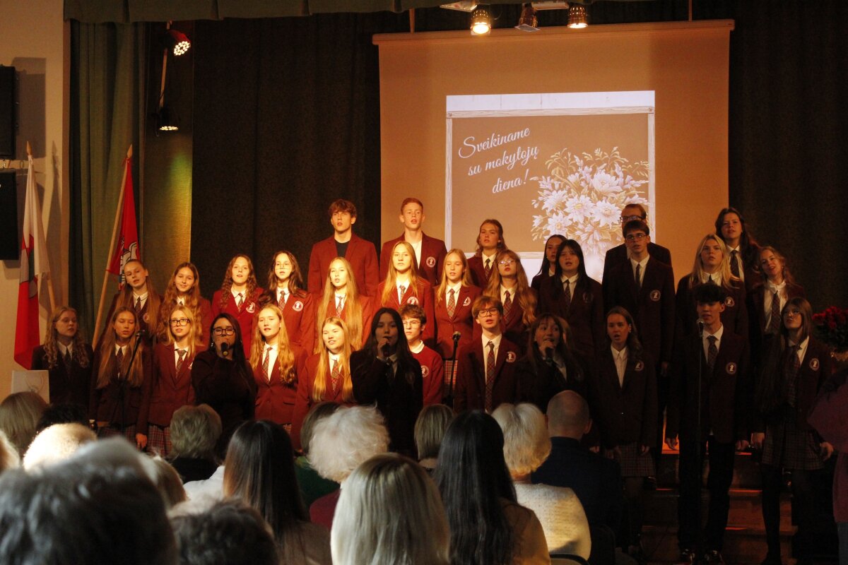 Mokytojų diena buvo šventiška ir džiugi. Nuoširdžiai dėkojame gimnazistams už gėlių žiedus, už skambią melodiją, už nuoširdžius sveikinimo žodžius. Tariame ačiū ir už netikėtus klausimus bei saldžius dešimtukus. AČIŪ už padovanotą šventę visiems gimnazijos mokytojams!