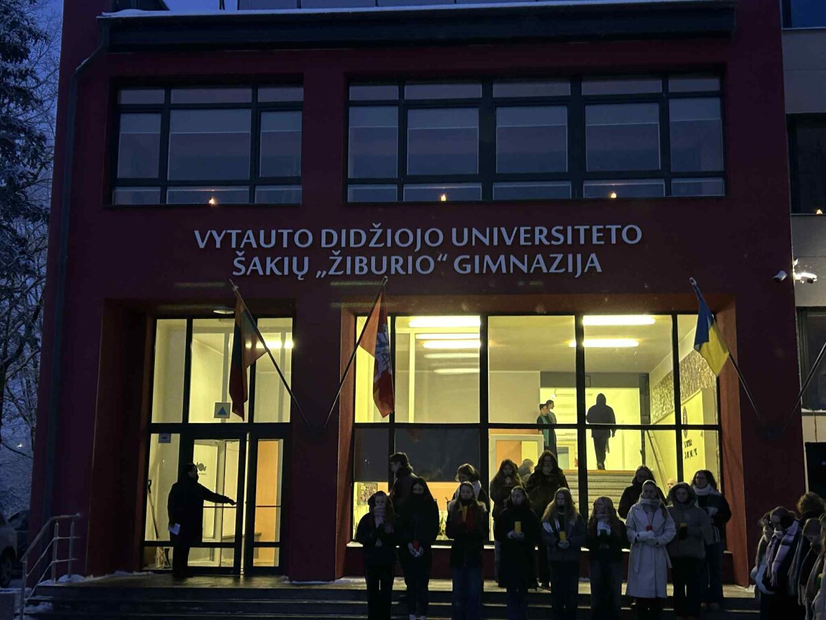 VDU Šakių „Žiburio“ gimnazijos bendruomenė 8 val. ryto susirinko prie simbolinio laužo, kur vyko pilietinė akcija „Pergalės šviesa“ sausio 13-osios aukoms atminti. Gimnazijos languose suspindusios žvakių liepsnelės ir degantis laužas priminė 1991 metų sausį, kuris liko visų Lietuvos žmonių atmintyje kaip laisvės ir susitelkimo simbolis. Prisiminėme ir pagerbėme atminimą tų, kurie už laisvę paaukojo savo gyvybes.