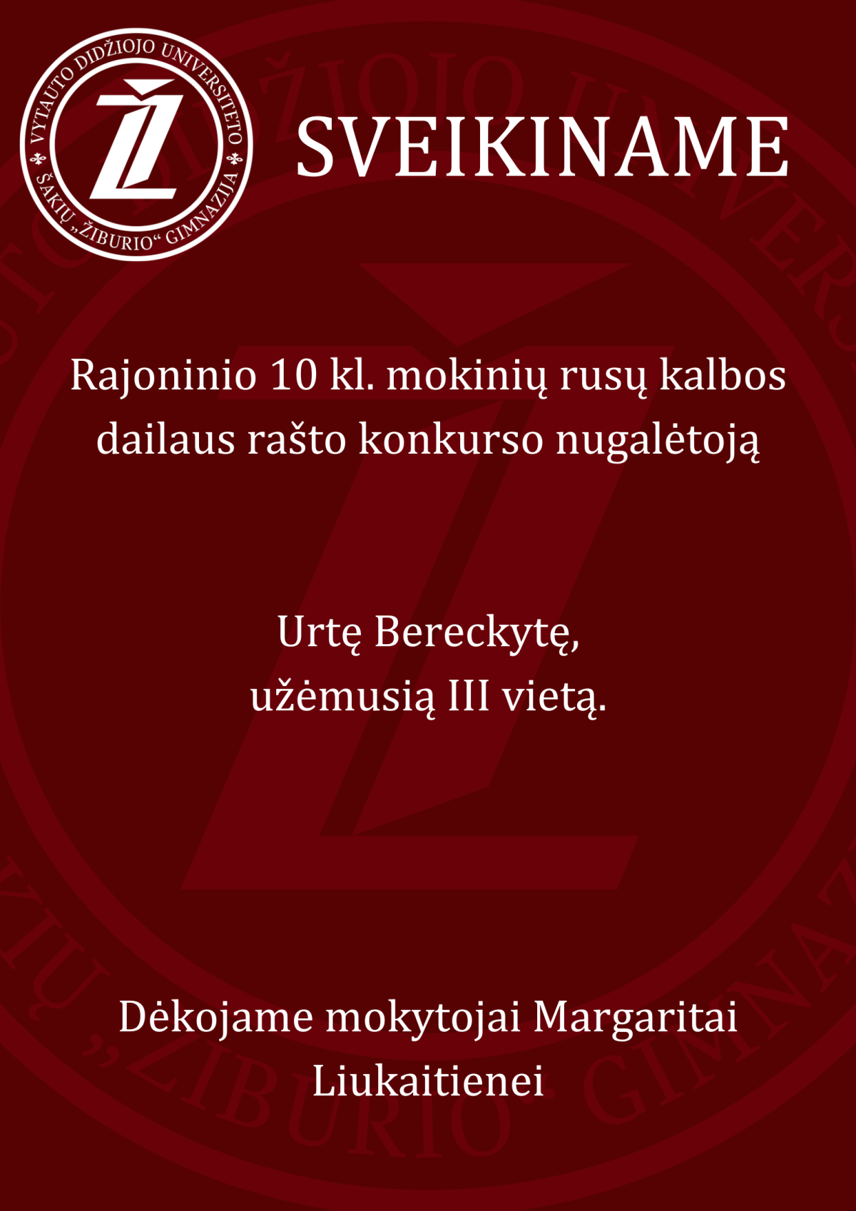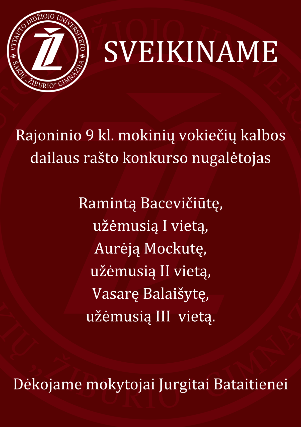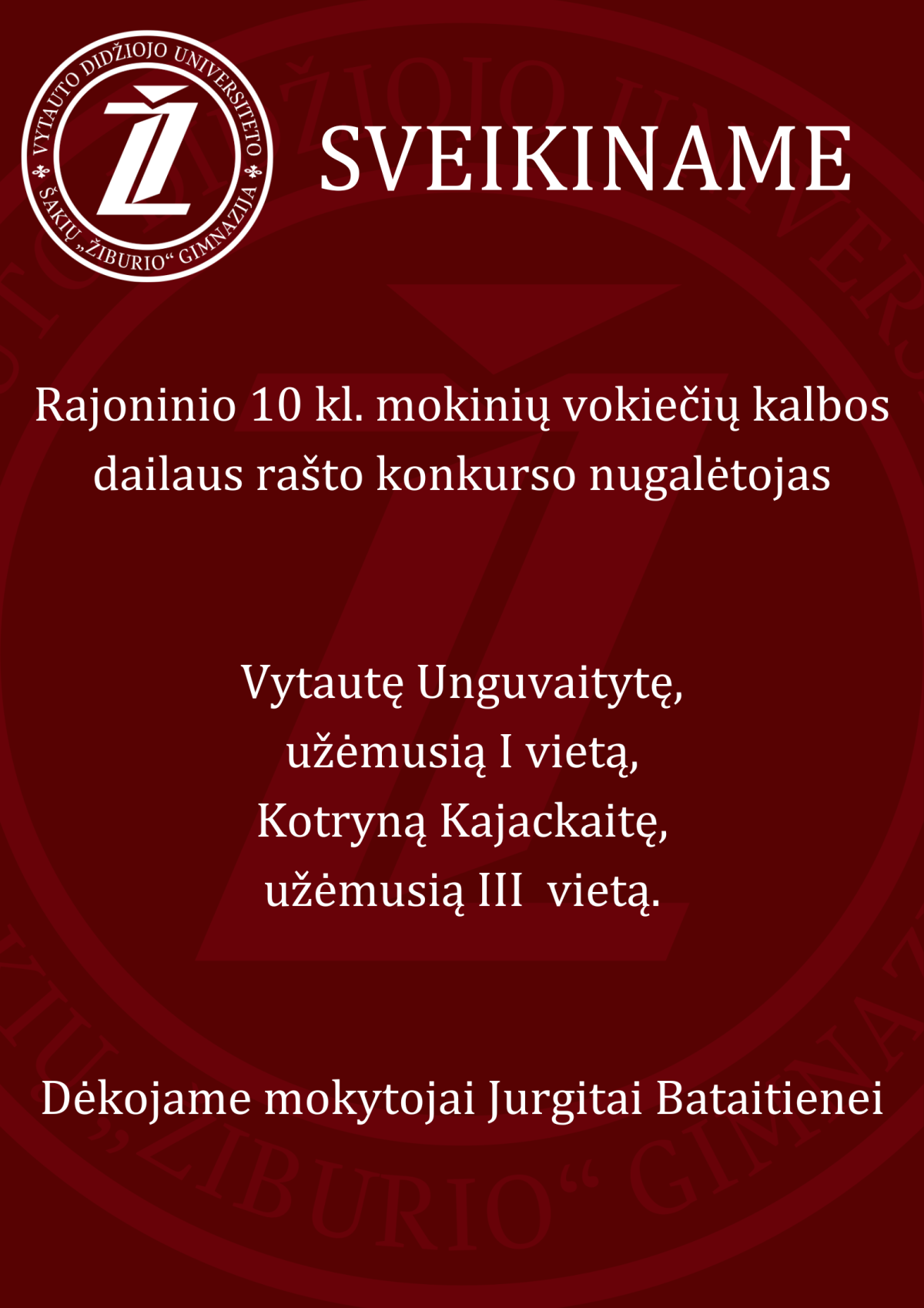Sveikiname rajoninio antrųjų užsienio kalbų dailaus rašto konkurso nugalėtojas