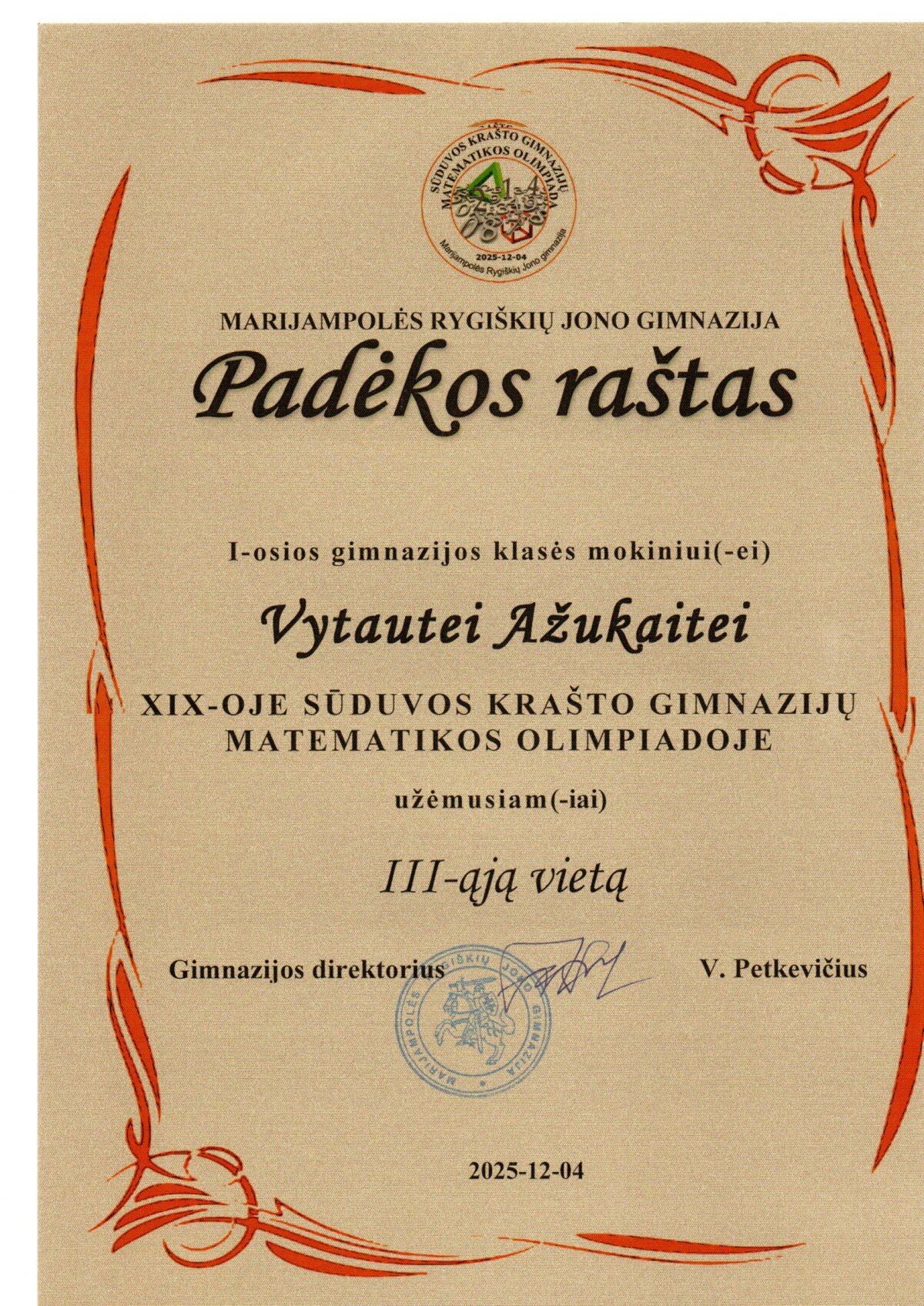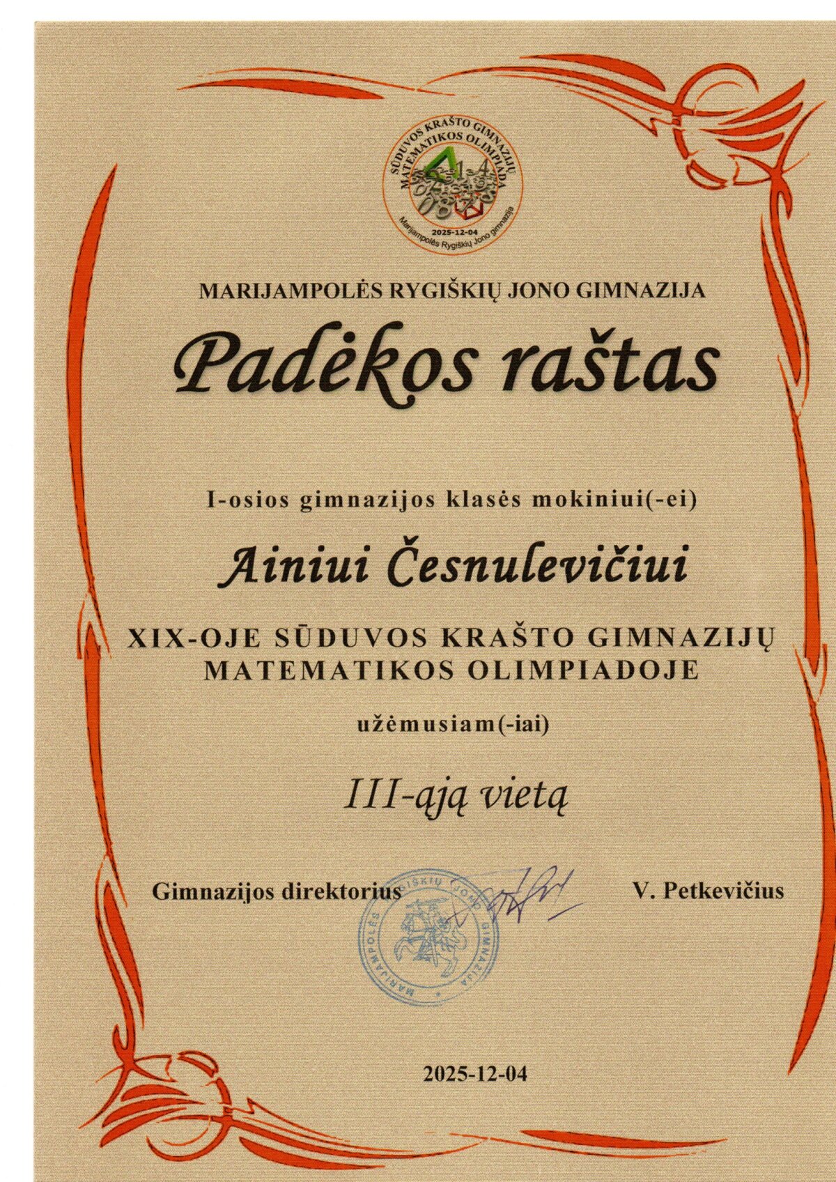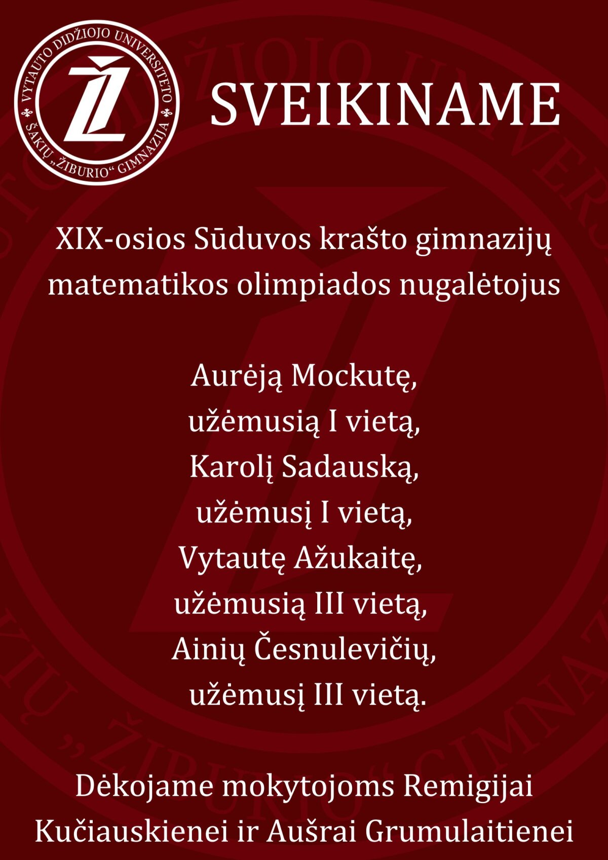 Sveikiname XIX-osios Sūduvos krašto gimnazijų matematikos olimpiados nugalėtojus