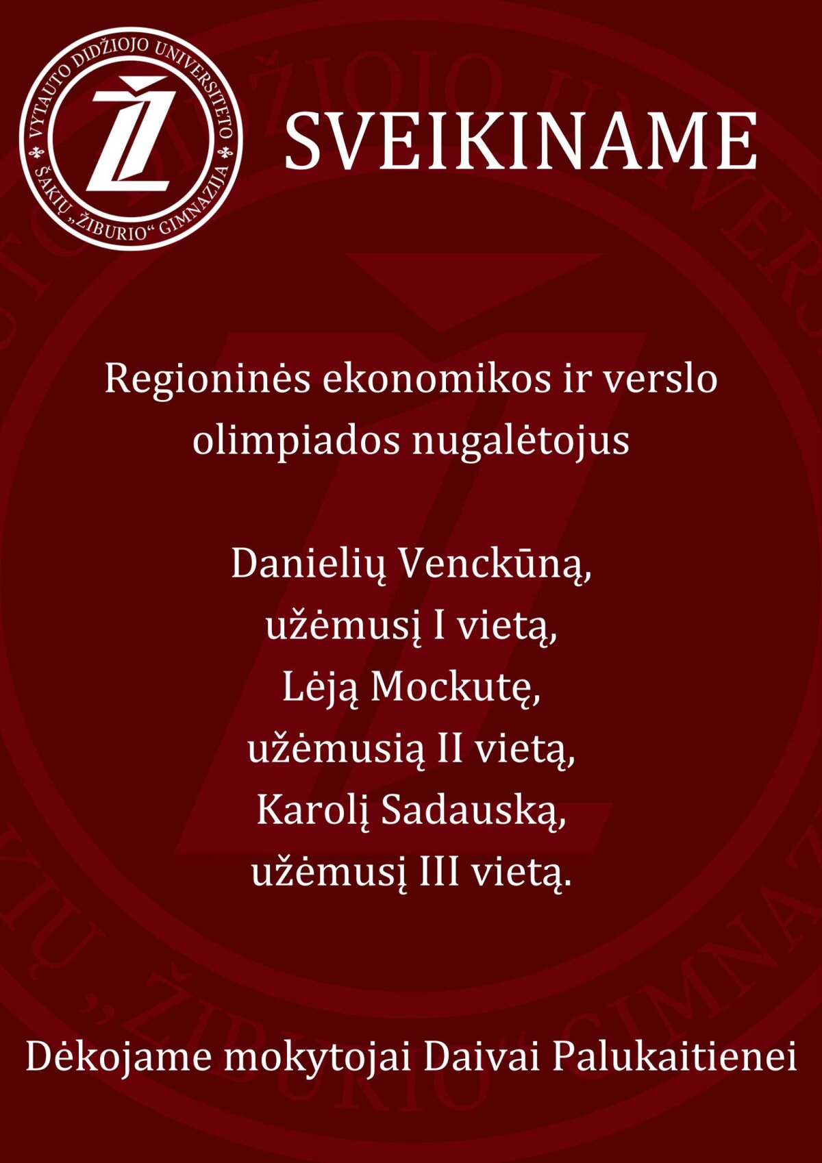 Sveikiname regioninės ekonomikos ir verslo olimpiados nugalėtojus