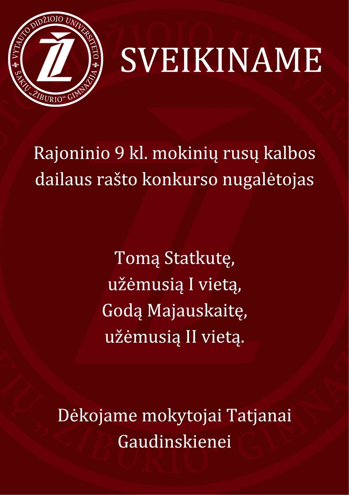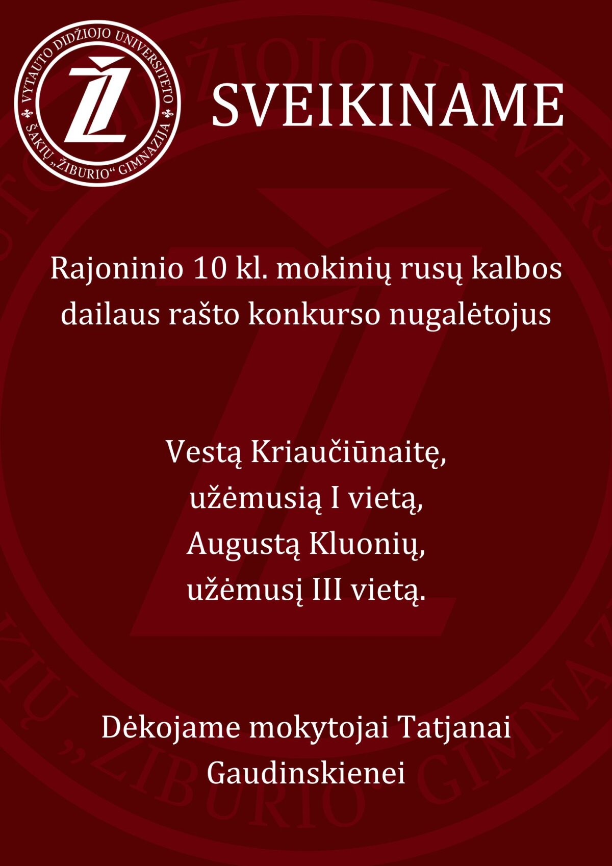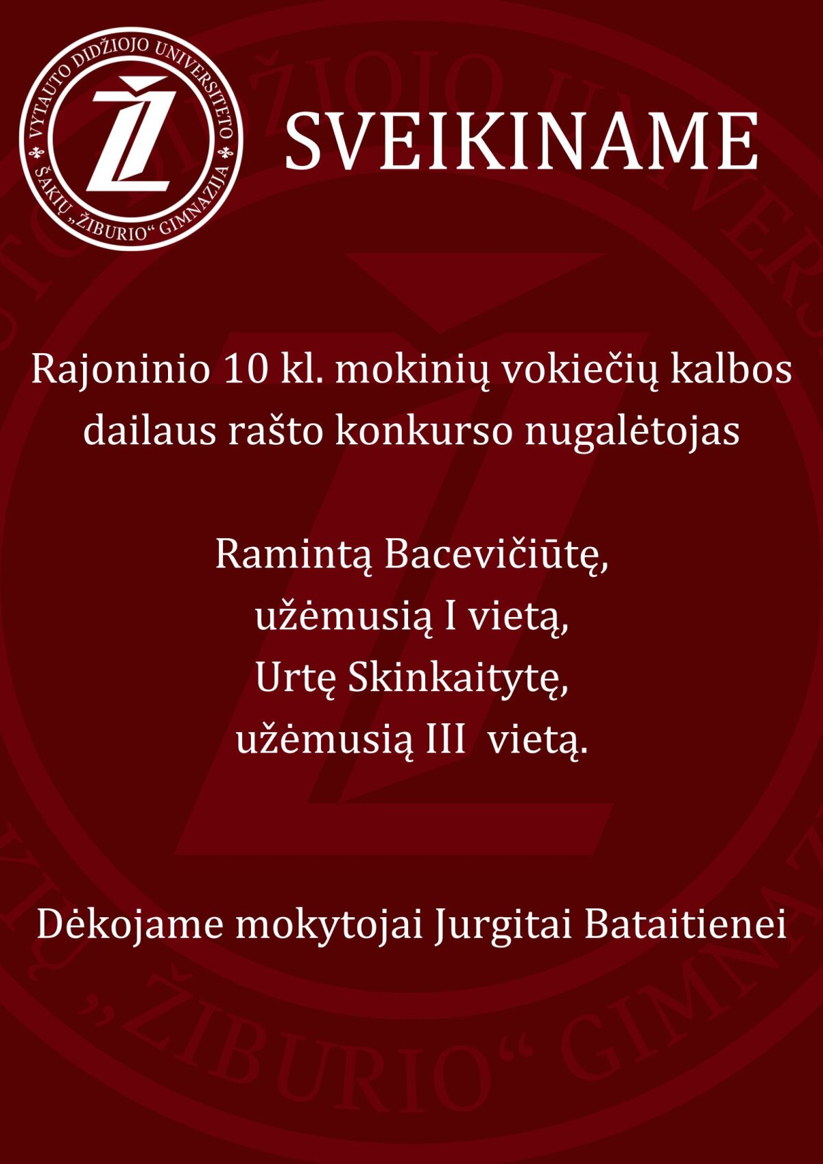 Sveikiname rajoninio antrųjų užsienio kalbų dailiojo rašto konkurso nugalėtojus